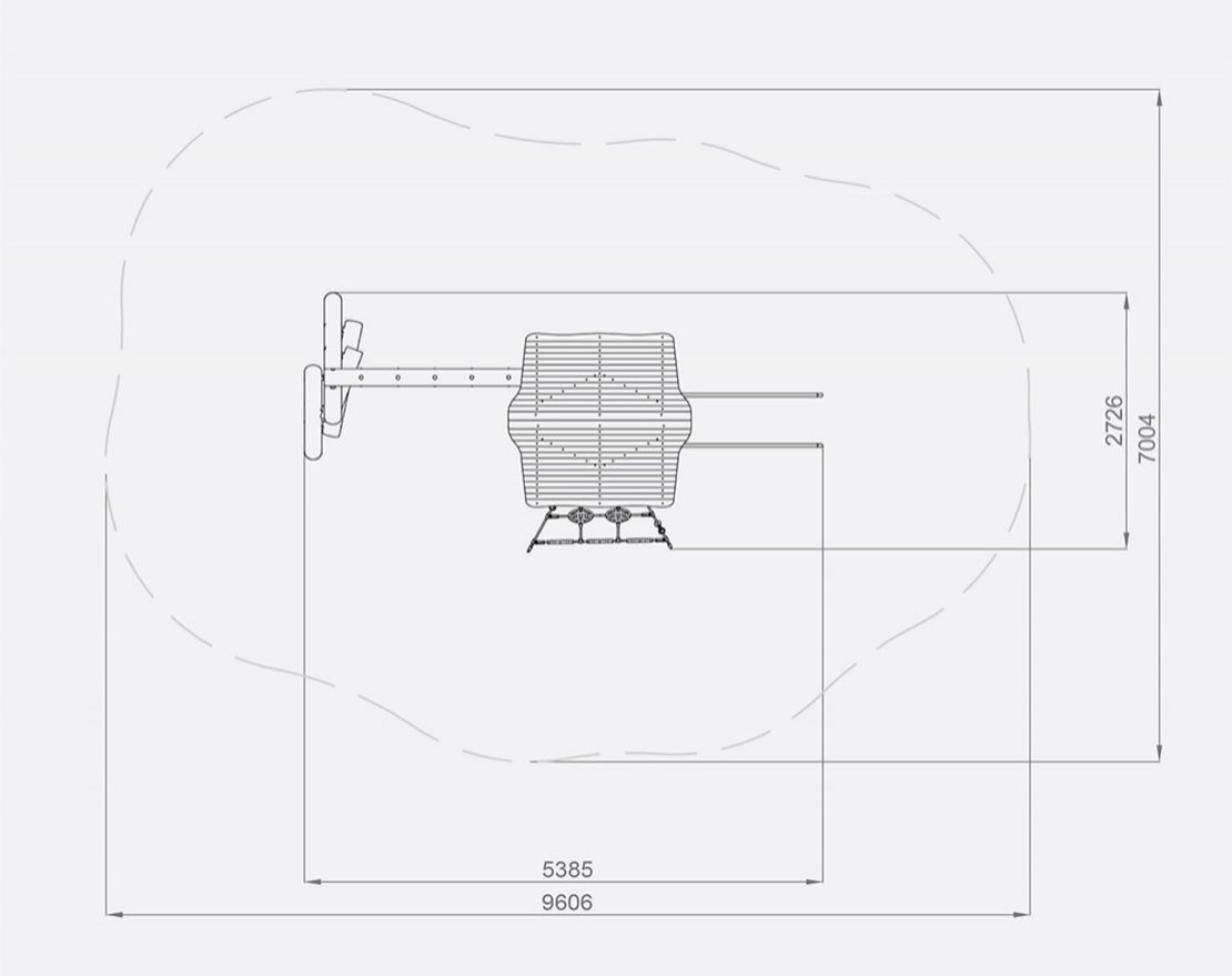 Состоит из опорных стоек, канатной сетки и металлической трубы-лазалки. Конструкция также оснащена ручками-стропами и металлическим рукоходом. Для большего комфорта, на канатную сетку установлены пластиковые ручки и уступы.