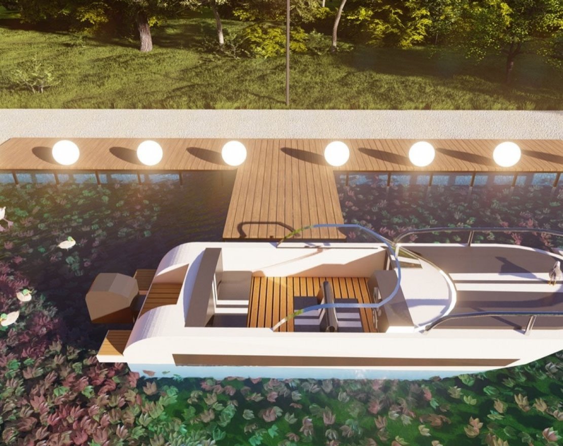 Пирс будет укреплен сваями, что обеспечит его стабильность и прочность.